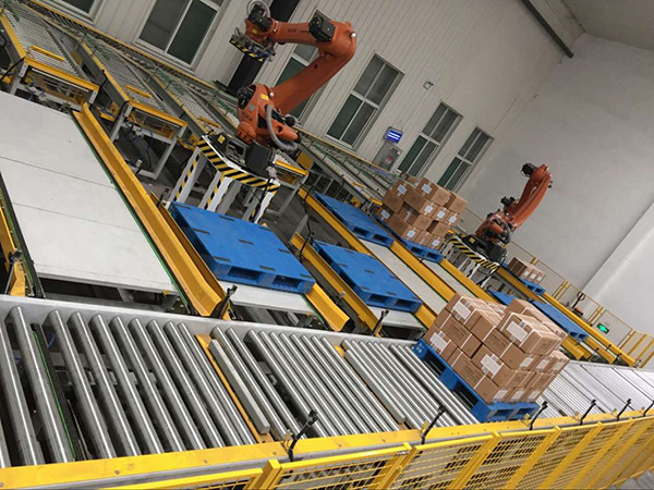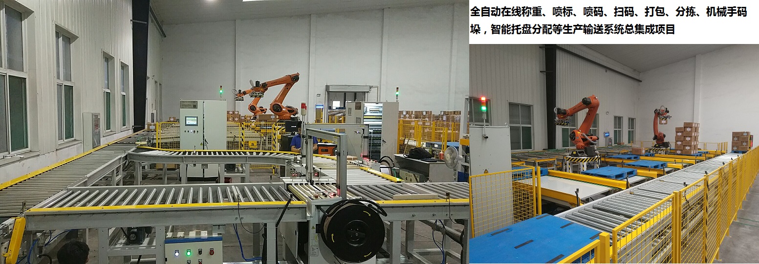 • 全自動桶碼垛包裝輸送系統,威高藥業透析液輸送系統